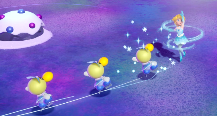 I found myself excited to see what the next new costume would be, and each time I unlocked a new Peach persona I was sold. Figure Skater Peach was a particular treat of a level, and it was magical to skate Peach around the ice rink to dance with the other Theets to a sparkling performance to defeat the Sour Minions.