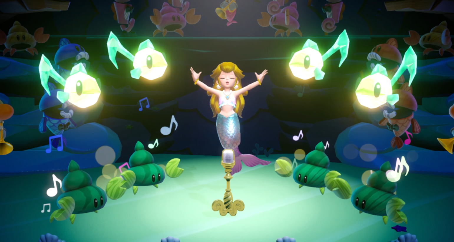 The main story takes around 8 hours to complete, which I did find disappointingly short. However this does fall in line with other Mario titles taking ranging from 7-15 hours. There is replayability, it was rare I got all Sparkle gems on the first try. Unfortunately on replay of the levels there’s no option to skip dialogue, and when some of these levels run up to 10 minutes, this can be a bit tideous to replay the same Mermaid Peach song again just to get that one outstanding Sparkle gem. But once all collected, I can’t imagine there would be much of a draw to pick it up again, as most of the fun for me was unlocking the new Peach styles, and once that’s done, some of the sparkle is gone.