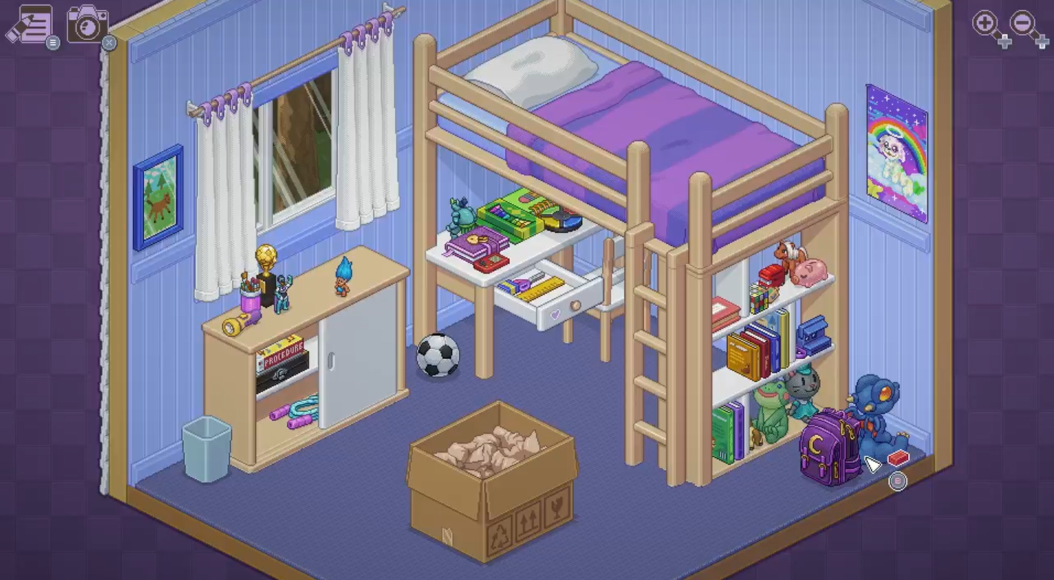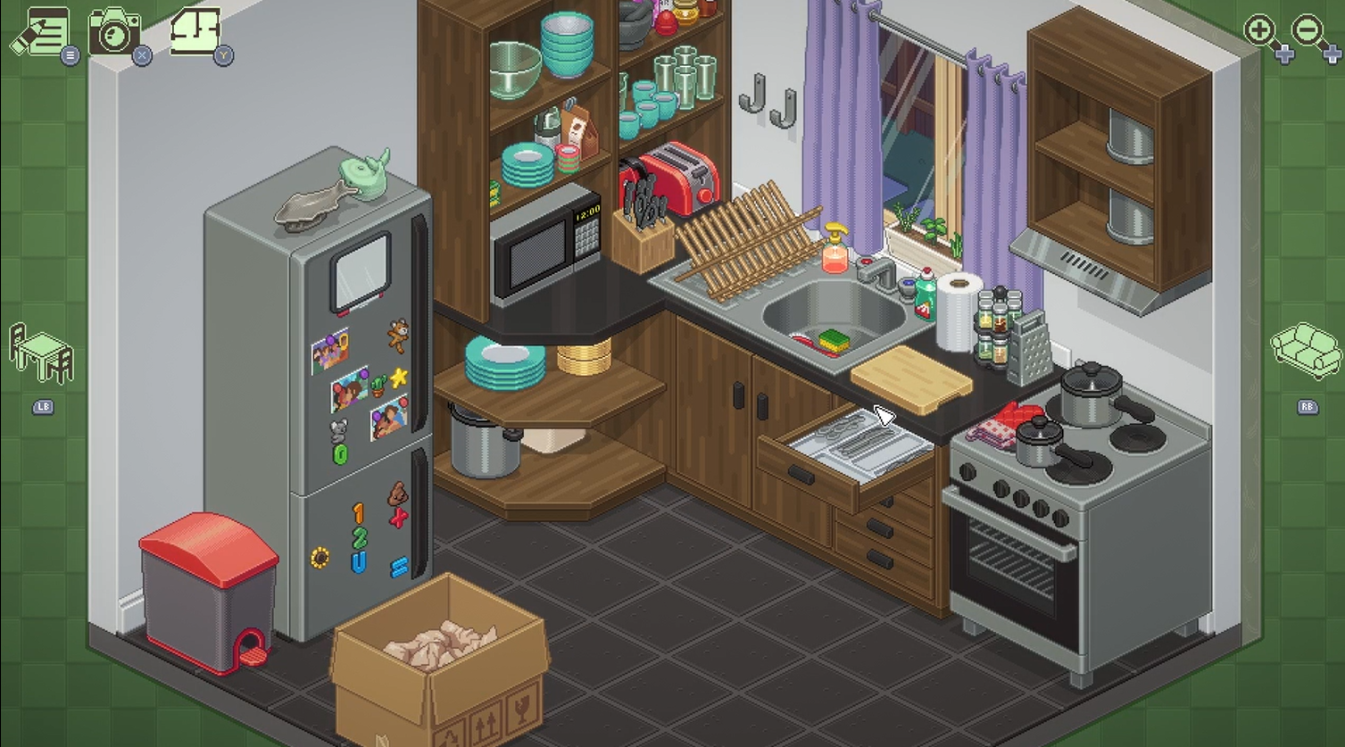 Each room has it’s own unique style that either allows you to express yourself and make it your own, or in other ways shows that it’s not always easy to fit in with another person’s space. The detail in each of the items are a vibrant pixellated design and it becomes quite exciting to see what you are going to pull out next. Another sweet element of the items is the changes in technology over the years you’re following the character, from Gamecube to Ninendo WII, or from chunky CRT monitors to sleek LCD screens over time. These little elements really helped with the passage of time in the game, and added some fun little easter eggs to find.